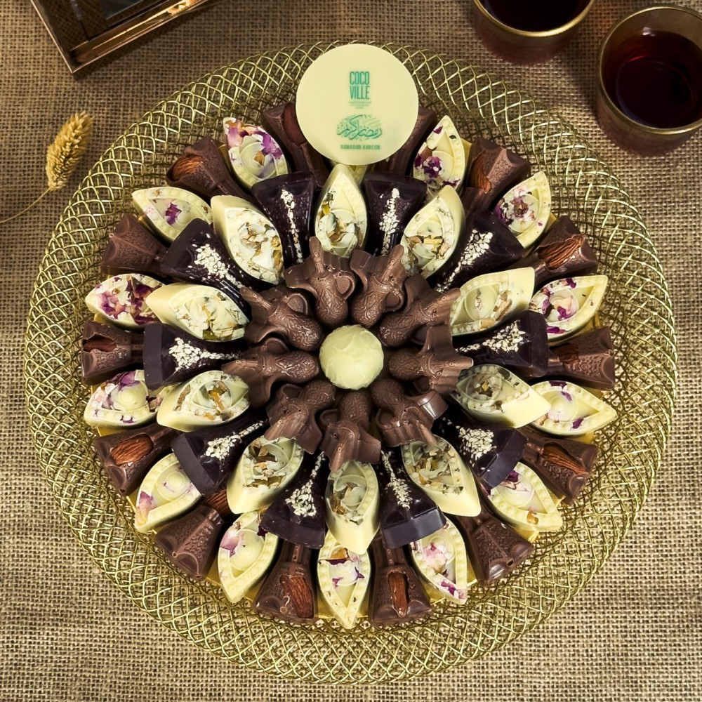 A charming Ramadan chocolate selection featuring the traditional lamp, protective eye, and elegant dallah. Celebrating light, hospitality, and blessings, perfect for sharing during the holy month.